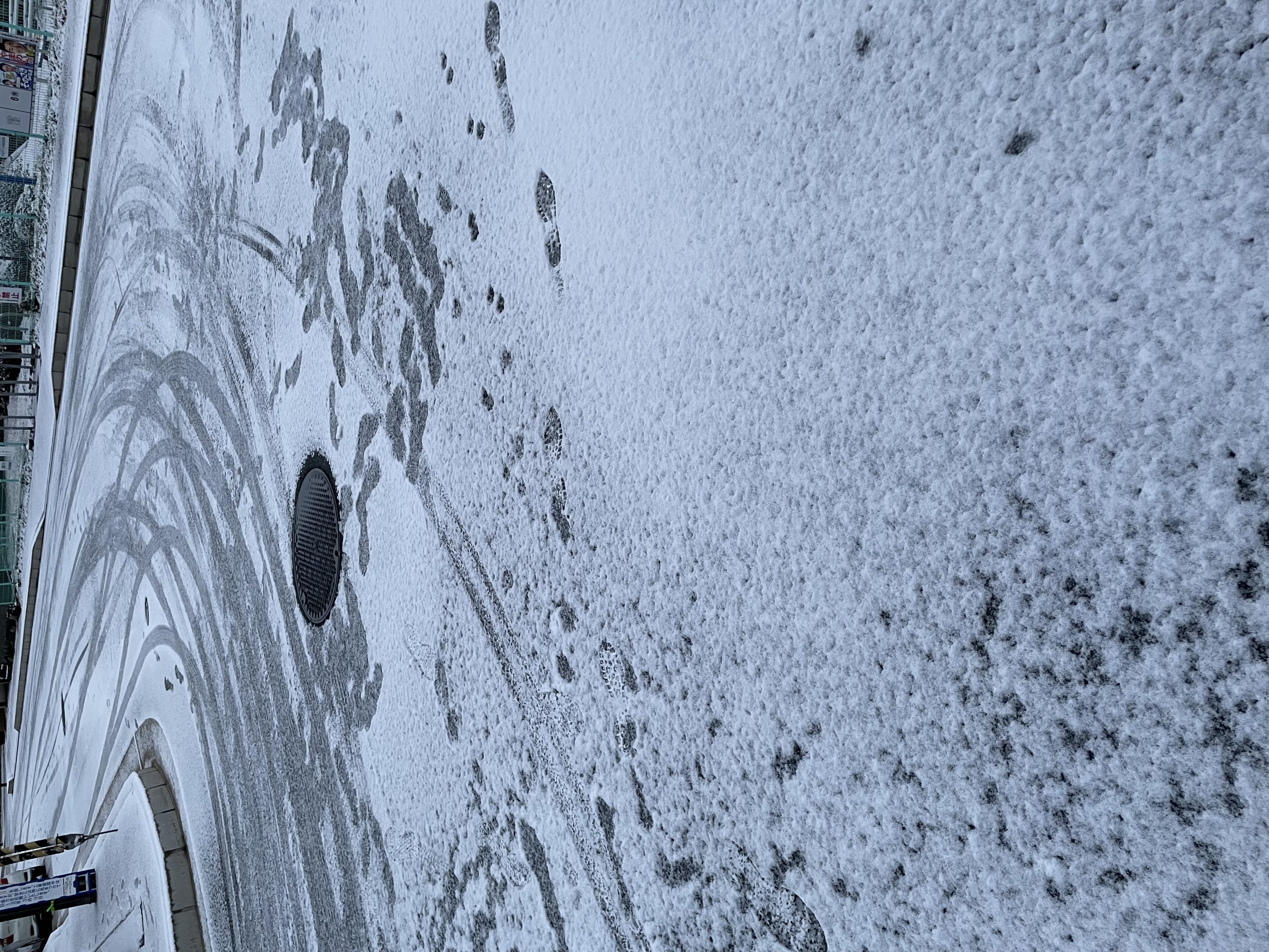 くずはから南はあんまり雪ないみたいですが、八幡市から北は、ガリガリに凍ってます。